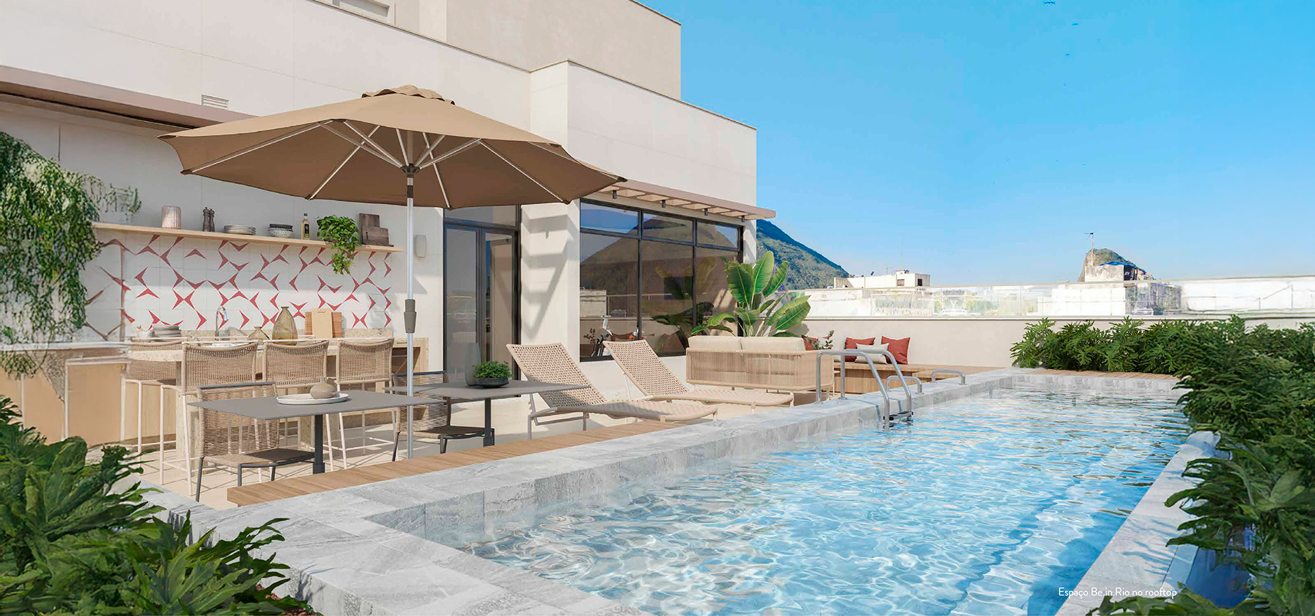 O painel artístico no acesso inicia o percurso do transeunte para a experiência de viver em um Be.in.Rio. Suas áreas comuns trazem funcionalidade e conveniência para o dia a dia. E, por fim, o rooftop coroa o conjunto com sua incrível área de contemplação e socialização.”