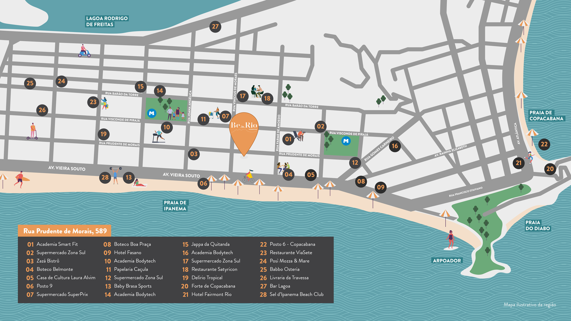A Coleção Be.in.Rio te permite viver o melhor da Zona Sul do Rio. São endereços valorizados e desejados, lugares que combinam o prazer das boas coisas à praticidade de resolver tudo a pé. Aqui, você esbarra no lifestyle carioca a cada passo.