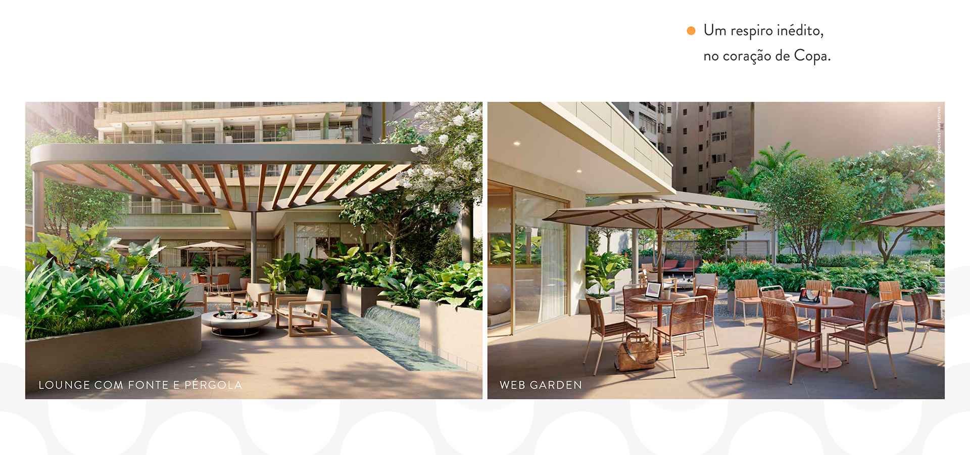 A arquitetura se torna extensão da Praça Serzedelo Corrêa, espaço sensorial onde o farfalhar das folhas se mistura ao murmúrio do trânsito, e o edifício se revela como abrigo. O verde se infiltra nos intervalos do grid, filtrando luz, ar e tempo. Entre densidade e leveza, o Be.in.Rio Praia Copacabana equilibra uma arquitetura que respira o bairro, feita de ritmo, luz e presença.”
