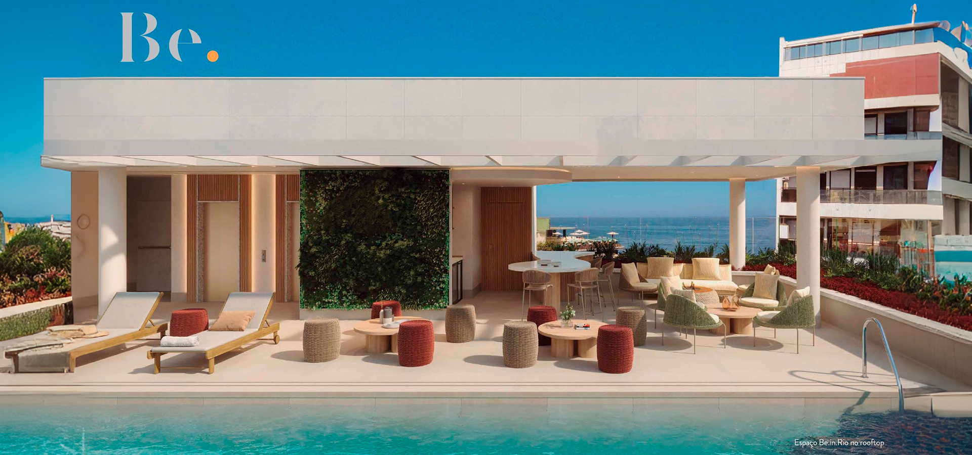 Entre o mar e a cidade, o Be.in.Rio Praia Copacabana nasce como um respiro no coração do bairro. A densidade urbana encontra ali um instante de pausa, um filtro entre o movimento das ruas e a calma que sopra da praia.