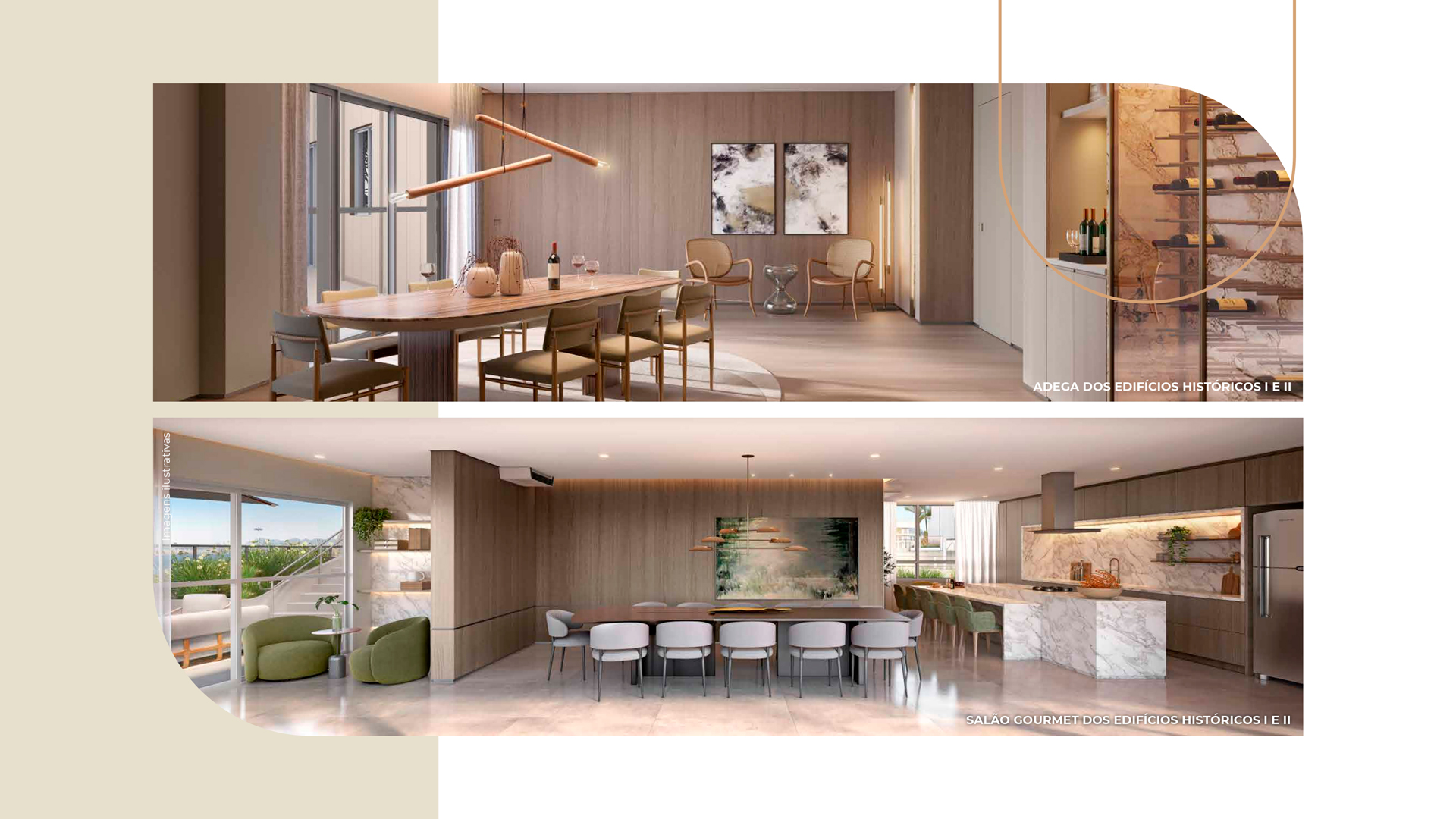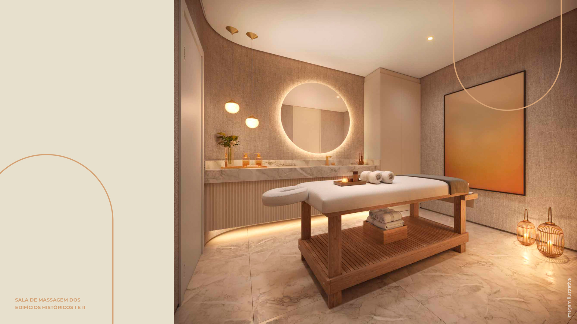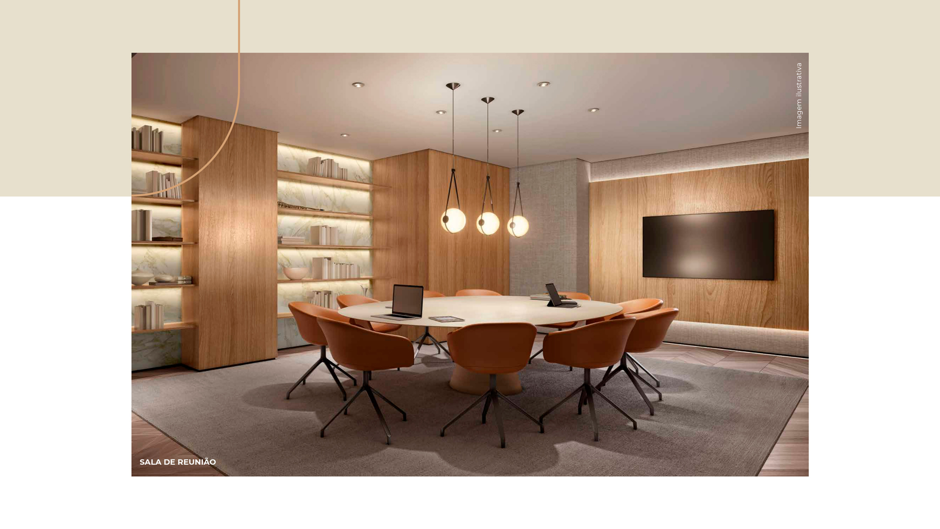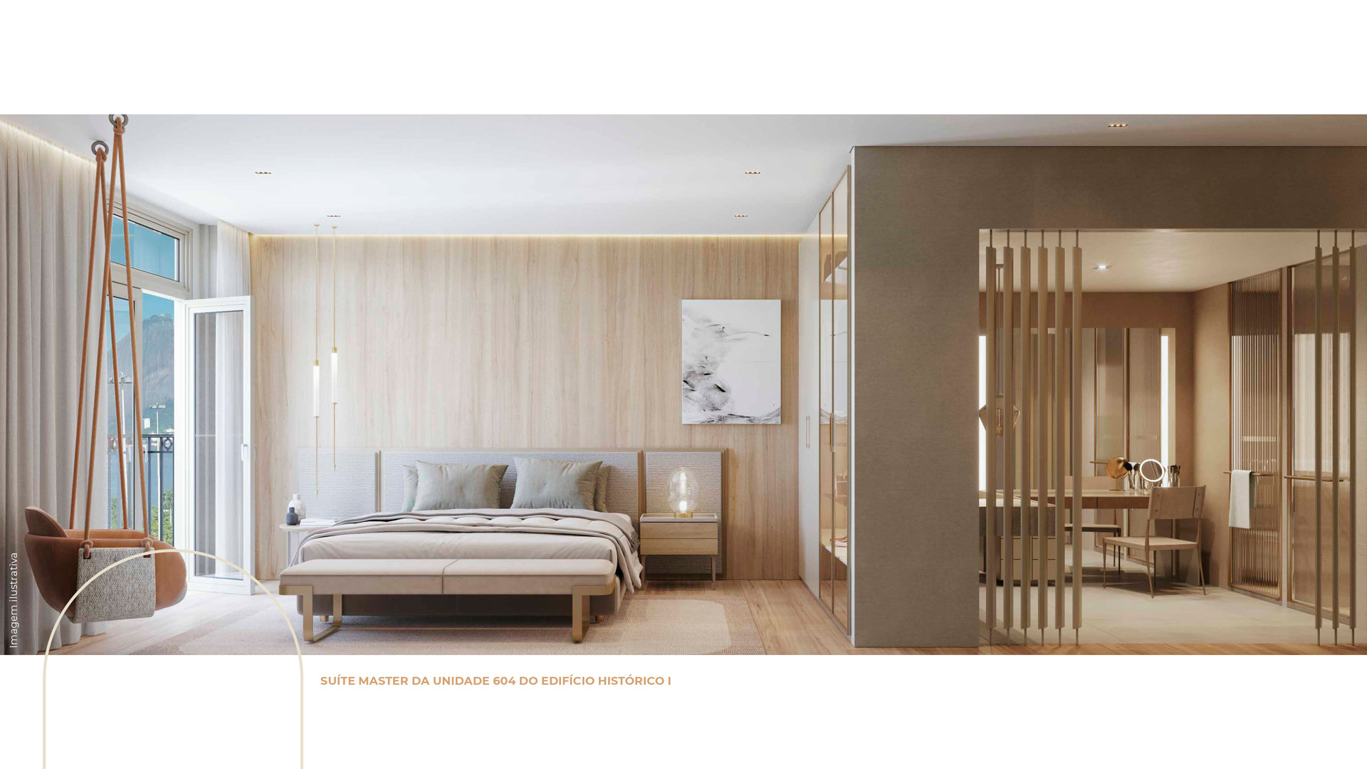 Para dialogar com as estruturas, dispomos de mobiliário em formatos orgânicos e sinuosos - apostando, principalmente, em sofás curvos - em um claro aceno à geografia da Cidade do Rio de Janeiro. A atualização dos interiores se dá na combinação do charme clássico com as peças de mobiliário contemporâneo nacional, texturas diversas e materiais naturais - como madeiras e pedras naturais brasileiras. Tudo isso arrematado com uma curadoria única de obras de arte contemporânea.