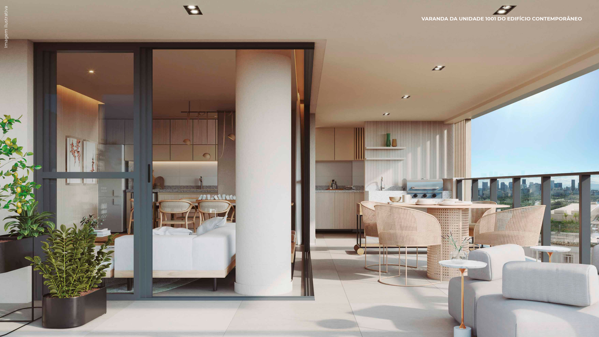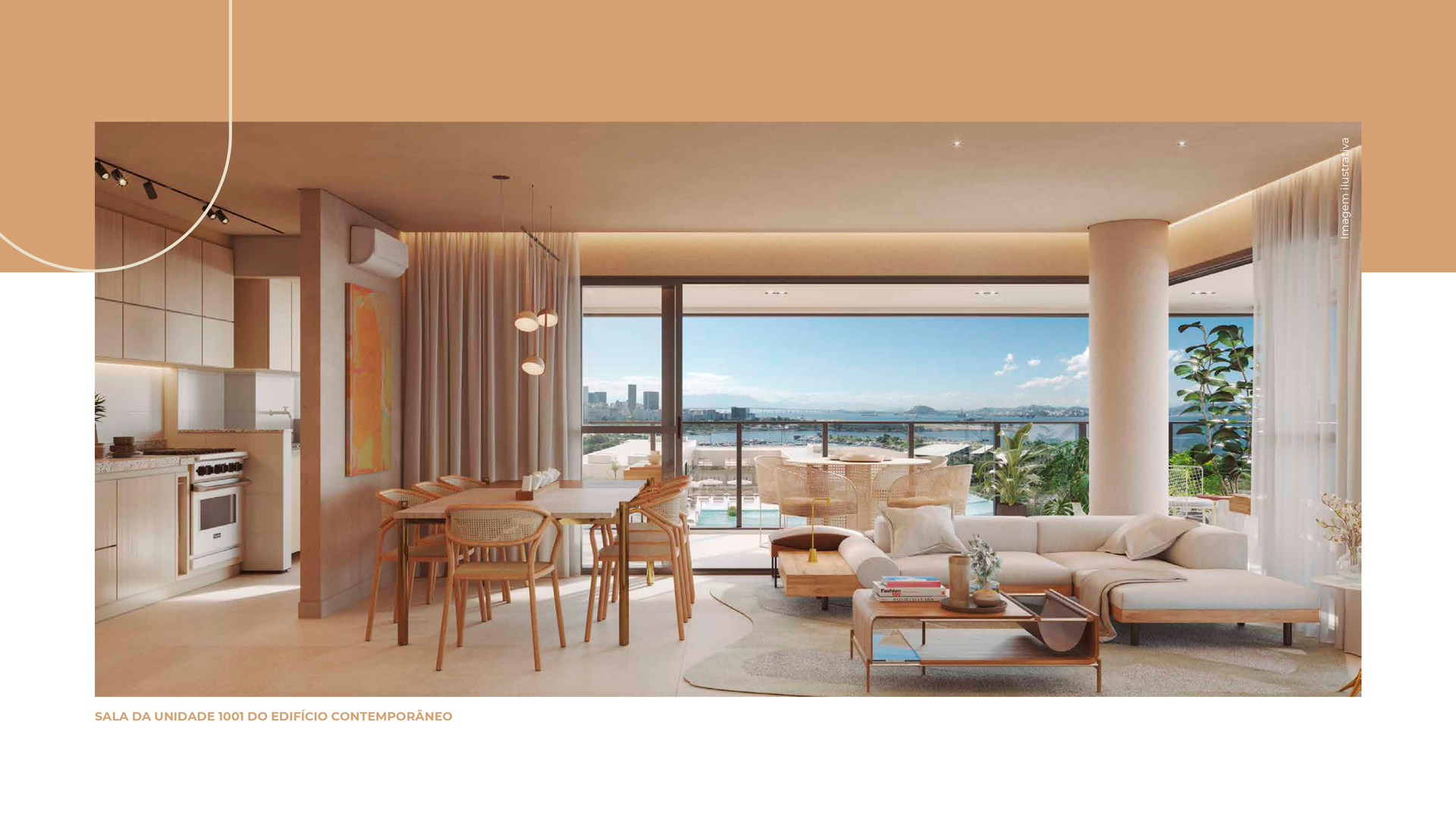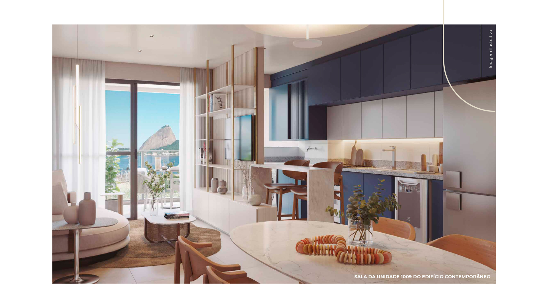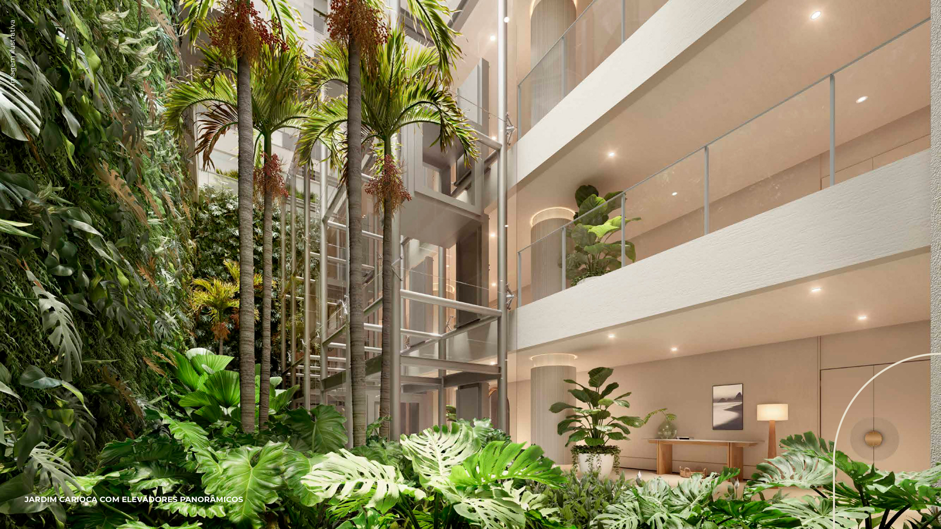 A paleta cromática também tornou-se um recurso fundamental. As nuances suaves predominantes fazem alusão à paisagem praiana ao mesmo tempo em que as tonalidades mais vibrantes - presentes nos acessórios, nas artes e nos detalhes - apontam a vitalidade da cidade, a alegria e o despojamento do povo carioca. Nos terraços e na cobertura do edifício, as cores e as texturas reforçam a conexão intrínseca entre os espaços internos e o paisagismo tropical dos jardins que circundam o condomínio.