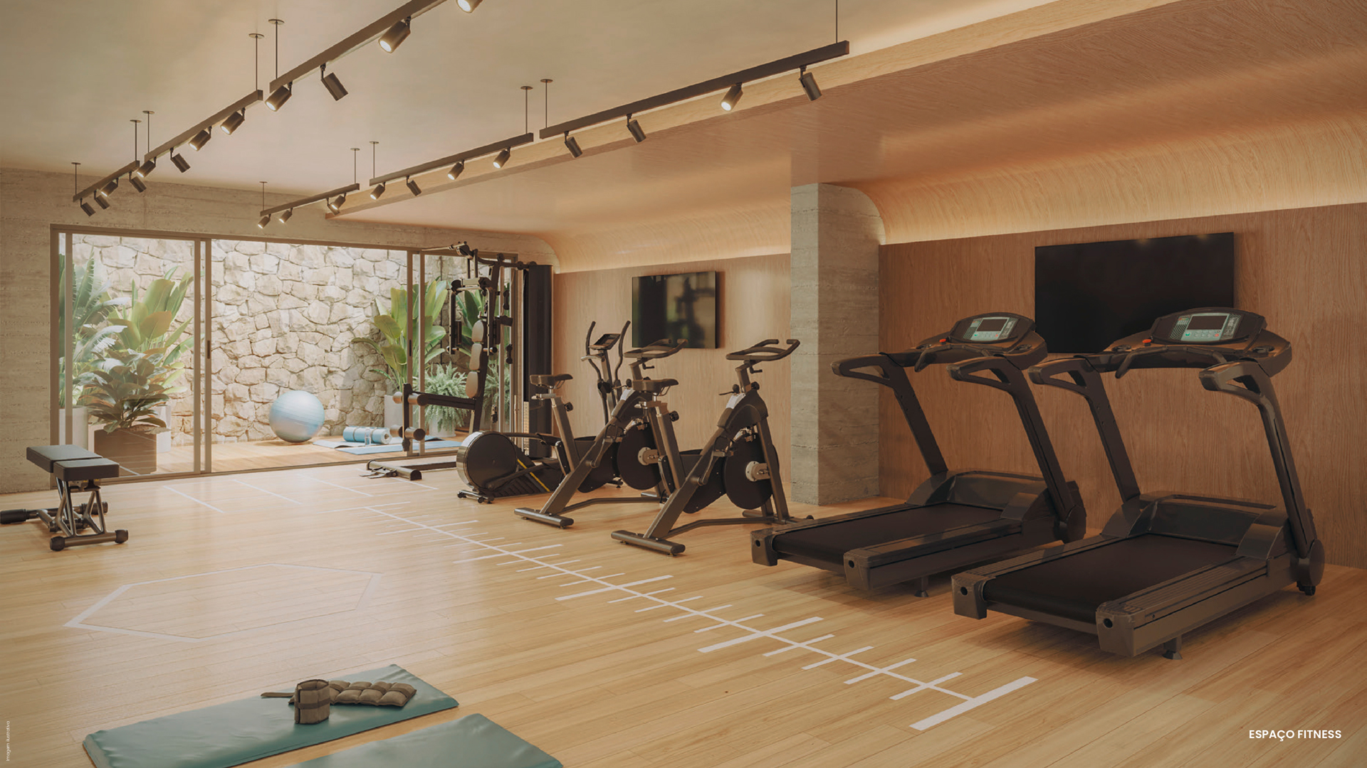 O auge desse modo de projetar demonstra-se no próprio embasamento com os apartamentos-townhouse, onde um volume paira sobre o outro em um jogo de cheios e vazios, incluindo uma piscina junto às copas das árvores, criando uma oportunidade única de morar em Ipanema. O mesmo cuidado com a qualidade espacial e a relação com o entorno permanece na torre, devassando a cada andar a paisagem ao redor através de esquadrias e varandas generosas e uma planta em constante relação com o exterior.”