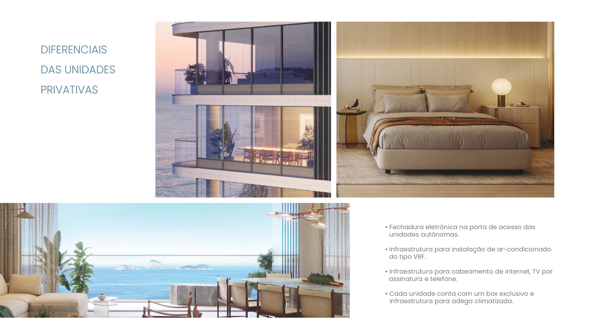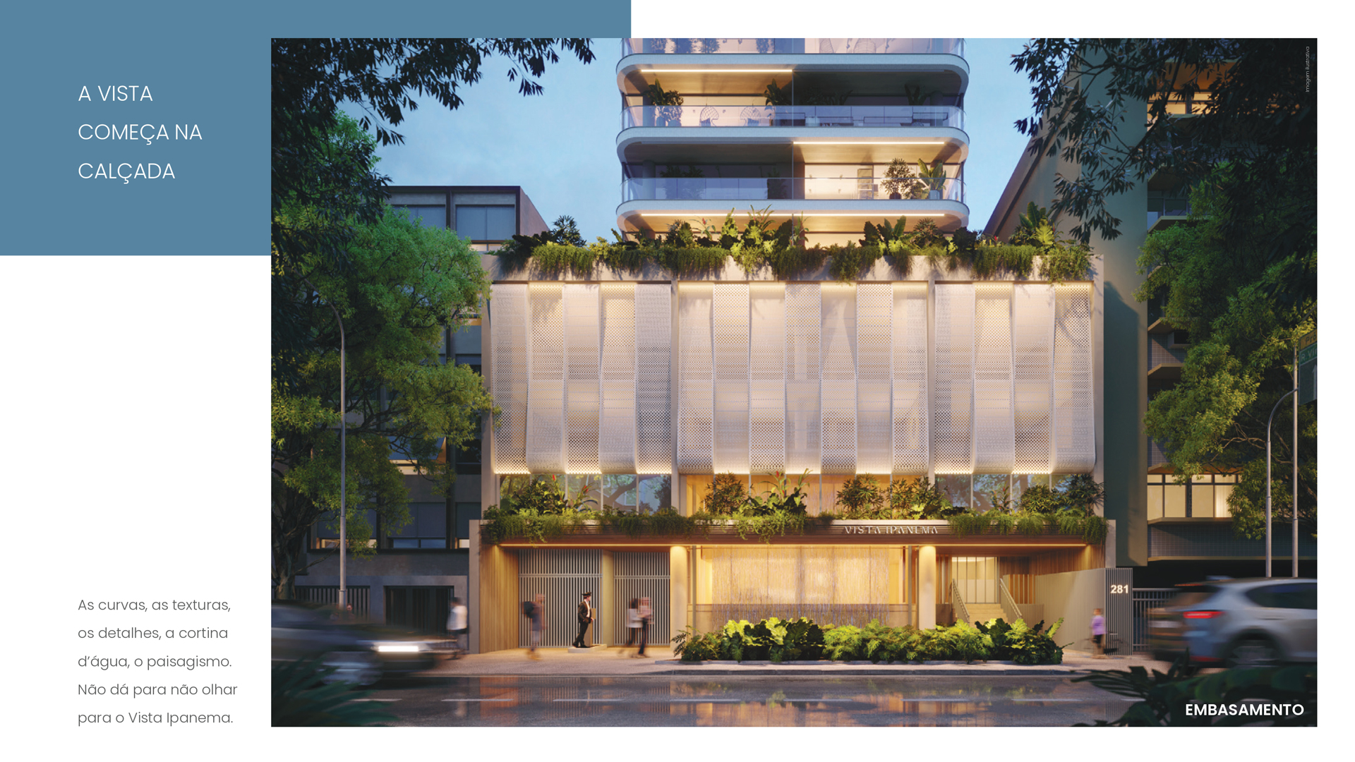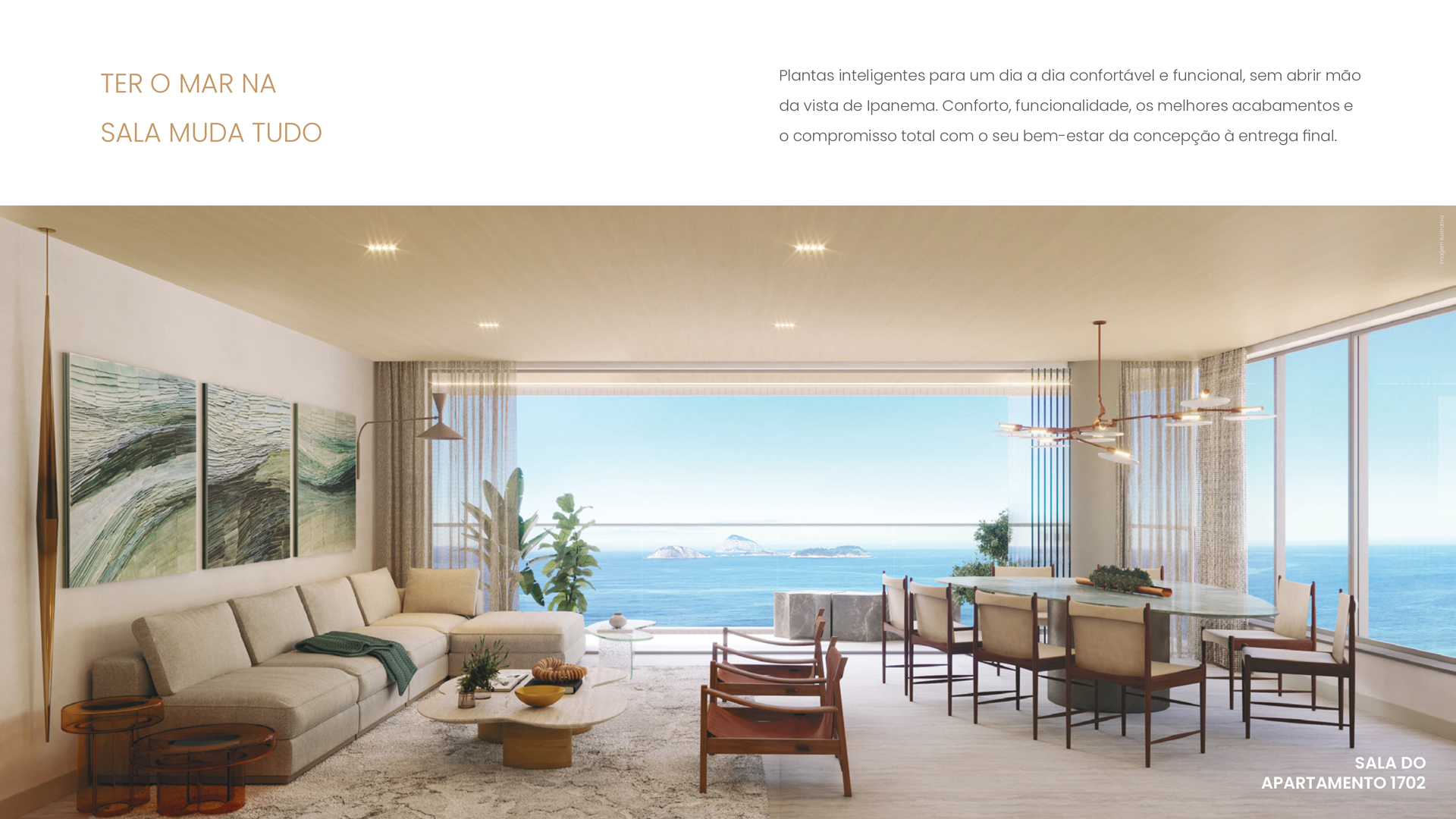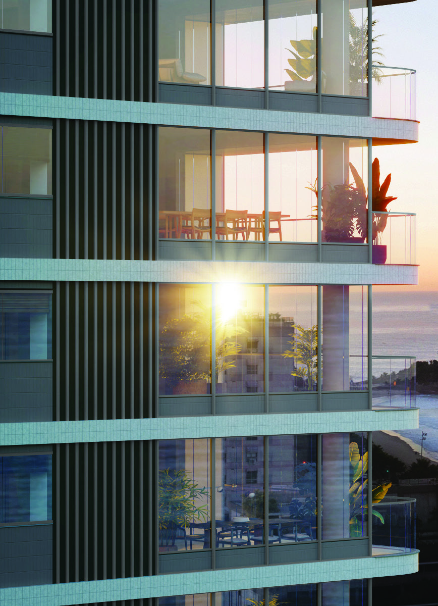“Por estar rodeado de uma vista deslumbrante, a relação com o entorno permeou o desenvolvimento de uma arquitetura que possibilita um panorama de 180 graus sobre a paisagem de Ipanema para cada unidade do projeto.